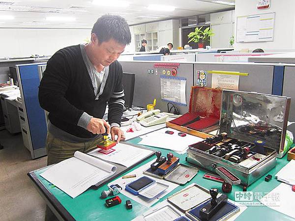 台北市政府秘書處的監印人員掌管各大小印章,包括象徵市府權力的官印。(陳芃攝)