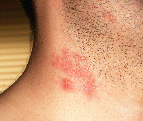 帶狀皰疹可能長在胸、腹、背、腰、臉部、頭頸及四肢,特別是眼部的皰疹若未及時治療,恐致視力受損。(photo by維基百科)