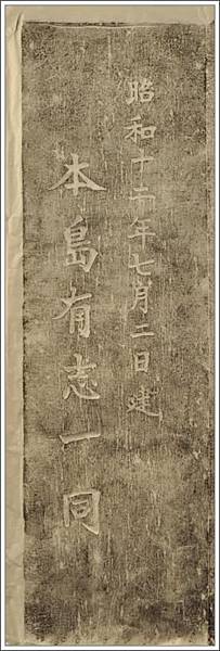 日治時期,人稱「君が代少年」的詹德坤也是本次震災的罹難者之一,震災當時,年僅12歲,為公館公學校3年級生。在《昭和十年新竹州震災誌》一書中,記載著詹德坤在震災中受傷情形及重傷彌留之際,吟唱日本國歌「君が代」一事;而學者陳其澎的研究文章中(註),更敘述了日本政府將此事件當作皇民化政策下的典範及宣傳素材。至於詹德坤之墓園,則未見有提及者。此次在謝校長及羅老師大力幫忙下,發現詹德坤的墓園座落在苗栗縣公館鄉大坑村第二公墓內,此墓設立於昭和12(1937)年,雖然墓園雜亂,罕有人整理的模樣,幸喜墓碑完整無恙。觀其型制,與週遭的傳統墓園迥異,再觀碑側面之碑文: