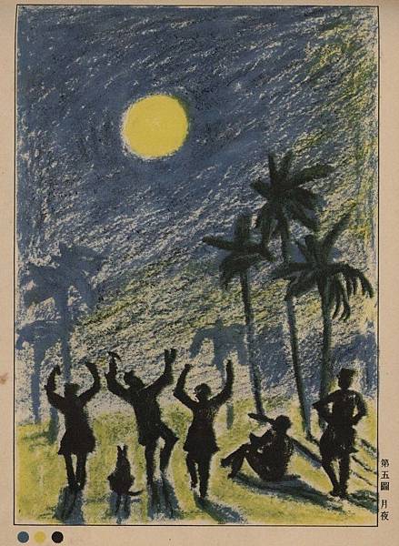 分享一張日本時代蕃童教育所(原住民兒童)用美術課教師參考教材「月夜」。
