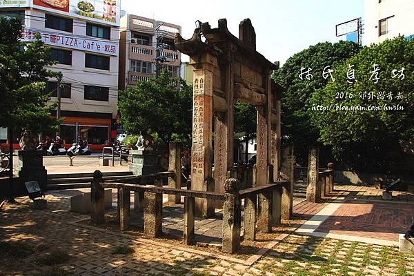 林氏貞孝坊是四柱三間雙層格局,由於奉准建坊與實際興建時間不同,所以正反兩面都列出當時的管轄官員姓名與職稱,從閩浙總督到淡水廳儒學,其中一面刻有"旌表故民人余榮長未笄妻貞女林氏坊"~~