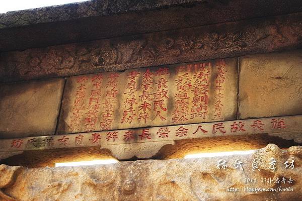 整座牌坊都可見到許多歷代官員的題字,多是頌揚林氏事蹟,這些署名中比較熟悉的是曹謹,貞節可風四字是他在他在道光23年所題,當時的職稱是特陞知府同知淡水廳事,不論是他在鳳山縣令興建曹公圳或是淡水同知時期都為人民做了不少事,但後來的仕途卻不怎麼順遂,令人相當惋惜~~