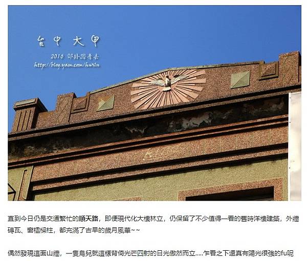 直到今日仍是交通繁忙的順天路,即便現代化大樓林立,仍保留了不少值得一看的舊時洋樓建築,外牆磚瓦、窗櫺樑柱,都充滿了古早的歲月風華~~