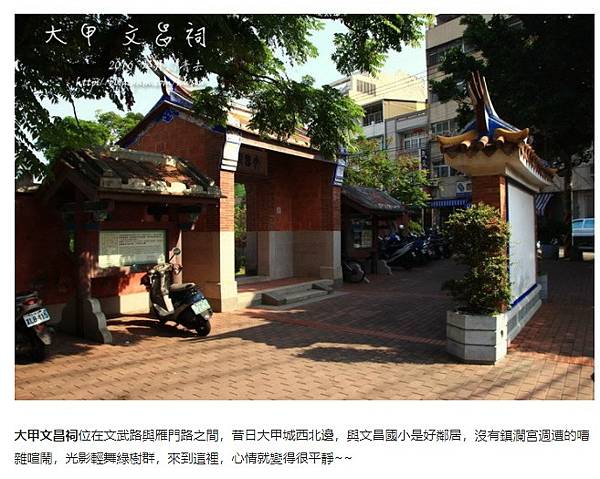大甲文昌祠位在文武路與雁門路之間,昔日大甲城西北邊,與文昌國小是好鄰居,沒有鎮瀾宮週遭的嘈雜喧鬧,光影輕舞綠樹群,來到這裡,心情就變得很平靜~~