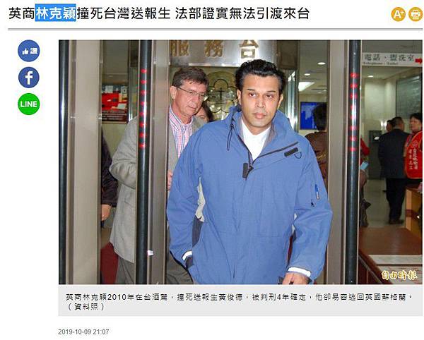英商林克穎撞死台灣送報生 法部證實無法引渡來台 - 社會 - 自由時報電子報