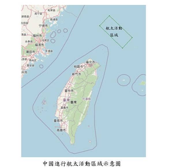 中國在台灣以北海空域以「航太活動」為由,於我管轄的台北飛航情報區內劃設警示區。(交通部提供)