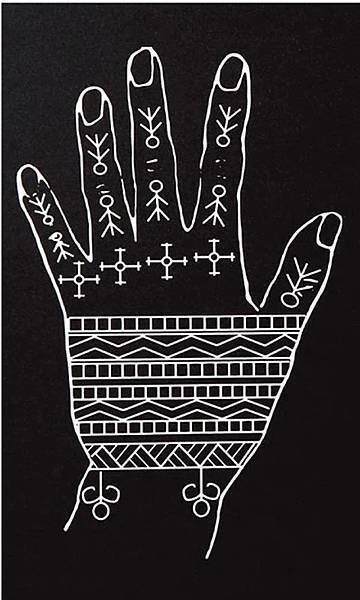 手指上的人形圖是表示有管理百姓的權力,很像是村民在跳山地舞的感覺。其中頭目與大頭目的手紋不同的是太陽圖案的光芒還有居民的人形圖,大頭目的光芒是十字的,人型圖也多了一些線條,而且大頭目的手,也有代表部落及傳統領域的圖案,拇指則代表權力。