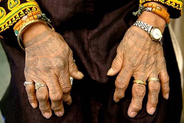 台東排灣族婦女過去有紋手的習俗,代表著社會的階級,從紋路可以看出婦女是否貴族、頭目家族,以及擁有的財富等。