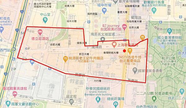從總統府這邊 往228公園方向 拍攝急公好義坊