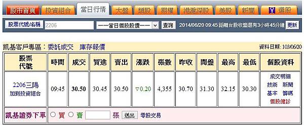 三陽昨天股價也出現劇烈變化,比起股東會更為刺激;原本因改列全額交割連跌兩根停板的股價,昨天以大跌開出後1小時,急拉至漲停板後,快速回落至平盤附近;就在收盤前夕,又突然猛攻亮燈漲停,最後就收漲停價28.7元,單日股價震幅高達13.04%,上沖下洗,讓投資人心情大洗三溫暖。昨天三陽成交爆量2.05萬張,較前一日增加11.5倍,三大法人昨天聯手大賣2,522張,賣超量創近1個月新高。