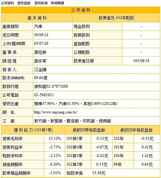 三陽第一季合併營收153.62億元,年增37.56%,稅後淨利13.52億元,年增約37%,每股盈餘1.71元,較去年同期增加0.45元;法人預估,三陽第二季可望維持第一季營運表現,第三季則進入機車銷售旺季,全年營運表現樂觀。三陽「金三腳」齊發威 股價飆近26年高點 - 自由財經 https://bit.ly/3Wfrzau