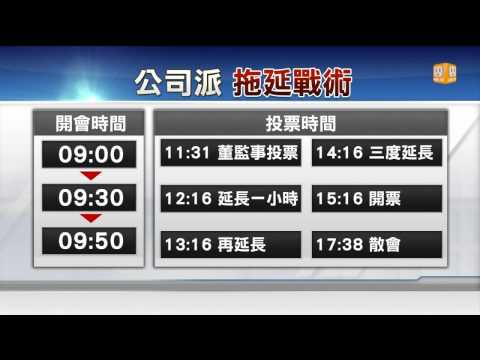 上午11時30分開始董監改選,公司派先公布投票時間「45分鐘」,明顯較於一般公司3~5分鐘的投票時間長,之後更3度宣布延長投票時間各1個小時,加上後續計票時間,總計花了近5個小時才完成,遭場外市場派直虧,創下史上董監改選投票歷時最久紀錄。