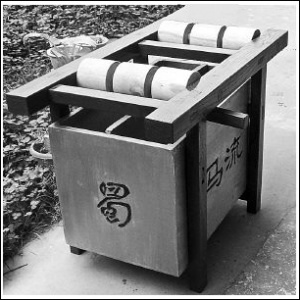 其中一種說法是單輪木板車,是一種山路用的帶有擺動貨箱的運送顆粒貨物的木製人力步行機。