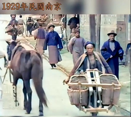 獨輪車+1910年清朝 宣統二年 110年前當年清朝人口四億多人,清朝末年人平均壽命 :男41歲,女43歲-清朝(1644-1912}末年北京城 平民,貴族眾生相,清朝 街道 喪禮巡行