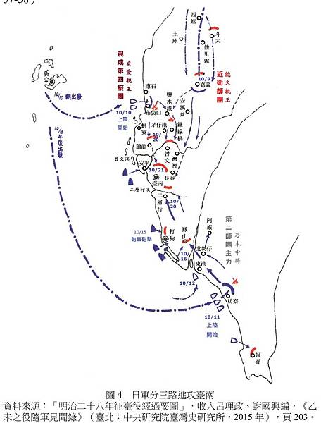 九月初四日(西曆十月十九日)【筆者按:應是十月二十一日】午刻,日本水軍由安平南路入安平港。