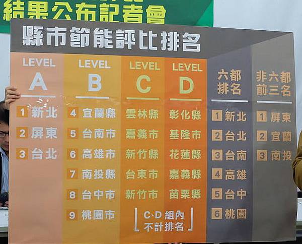 由民間團體組成的能源轉型推動聯盟公布各縣市節能政策評比。攝影:陳文姿。