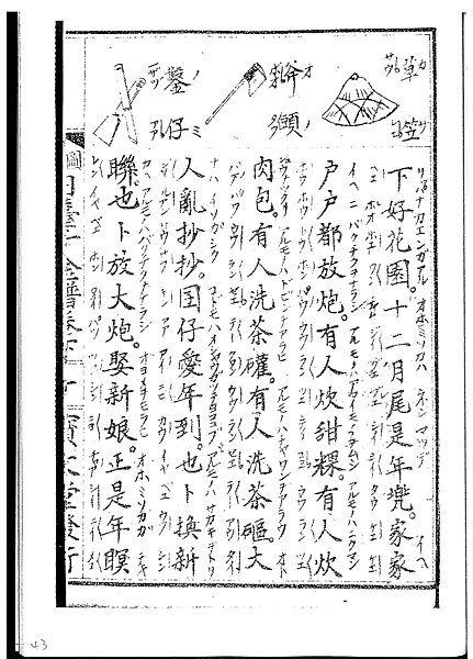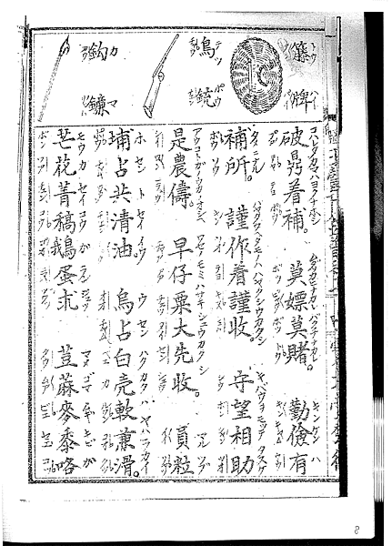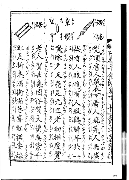 但讀音的問題,老實講也還不難。嫌吳登神在80年代田調的發音還不夠老、不夠道地?最早有逐字標音的千金譜版本,大概是昭和17年(1942)張春音標音的「圖解日臺千金譜」了,全書逐字用日本片假名拼音,保存了日治時代千金譜的發音。