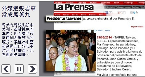 另外,一則西班牙愛菲社(EFE)新聞報導馬總統訪巴拿馬消息,但因誤植照片,把大陸國台辦主任張志軍當成馬總統,又被巴拿馬當地的新聞報與星報網站引用,引發議論。