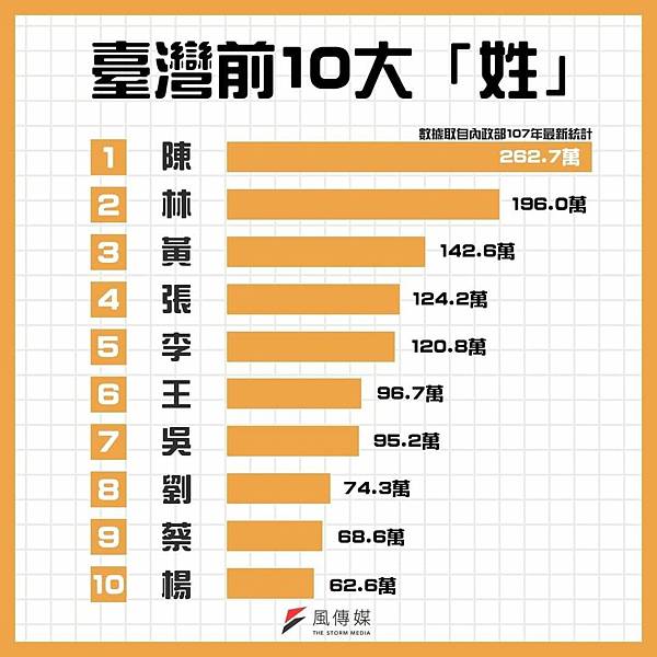 全台姓名最長13字 最短僅1字 台灣姓氏統計數據曝光!網見排名好意外