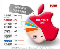在價值鏈的分工體系中,美國通過致力於技術標準的確立和推廣而站在製高點。由於美國人力資本昂貴,而科研力量發達,美國公司就逐漸把需要大量投入、折舊加快、風險增大的生產領域分離到中國台灣等其他地區。這樣,不僅免除了市場不確定性的風險、自然資源的耗費,而且擺脫了對日本計算機硬件的依賴。目前的計算機生產,由微軟和英特爾為首的美國公司不斷提陞技術標準並向全球推廣,程序的編寫在印度、硬件製造在中國台灣並向深圳、東莞、蘇州等地轉移,OEM和ODM等新的生產方式日益普及。顯然,這一路線恰恰把電子生產大國日本給繞過去了,日本在信息化過程中既沒有參與到產業鏈的分工又沒有獲取利益。