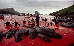 北歐丹麥的法羅群島(Faroe Islands),自古每年都有群體捕鯨傳統,與日本的捕鯨、加拿大獵捕海豹齊名。獵人會先在海外駕駛漁船,將鯨魚包圍趕至海灣,居民持金屬魚刀、魚叉刺向鯨魚頸部,將汪洋染成血海。這項傳統當然也引起動保團體的抗議與憤怒。