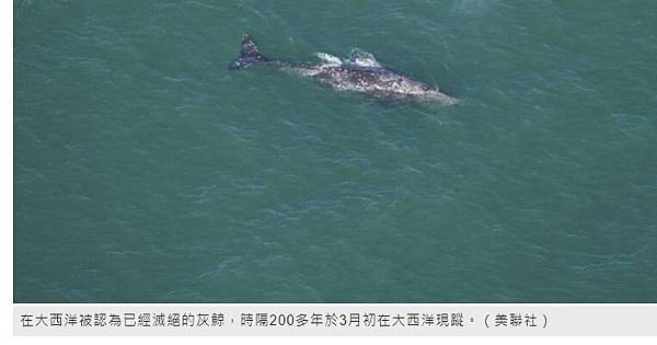 〔即時新聞/綜合報導〕在大西洋(Atlantic Ocean)被認為已經滅絕的「灰鯨」(Gray whale),時隔200多年竟然再次於該片海域現蹤,日前被捕捉到清晰影響,讓海洋學界感到震驚且興奮!
