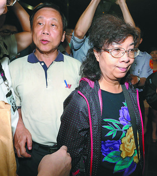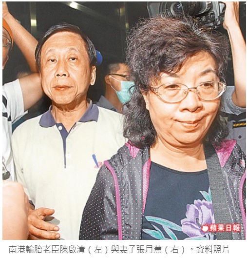 南港輪胎協理陳啟清(前)、張月蕉(後)夫婦涉嫌利用職務之便,向廠商索取回扣款。(陳信翰攝)