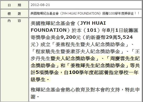 談到基金會的成就,姜俊生表示,看到有很多人需要幫助,他一直捐款給台灣貧困地區學校,以及照護先天殘障學生的學校。同時也頒獎學金。曾獲中華民國的政府部門多次表揚。
