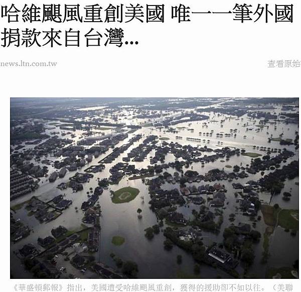 哈維颶風重創美國 唯一一筆外國捐款來自台灣...