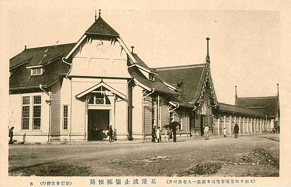 「基隆郵局」,建於1911年(明治44年),位於田寮河口,由日本建築師近藤十郎設計。屬於歐洲古典建築風格,其特色為正面有圓頂,而旁有高塔,為基隆當時的著名地標。