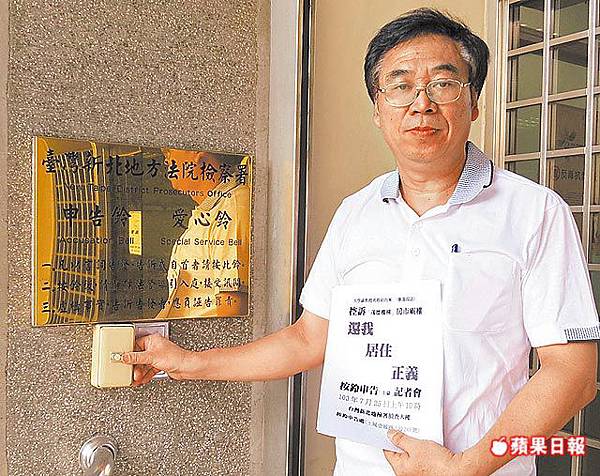 副教授張火木控告建商,涉嫌在預售屋合約書隱瞞車位坪數。王筱君攝
