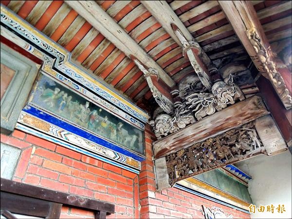 道東堂玉明邸裝飾建築的交趾陶、木雕、彩繪,非常精緻。(記者周敏鴻攝)