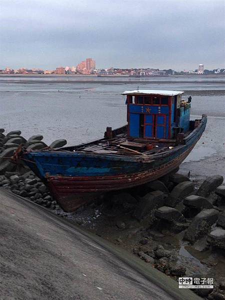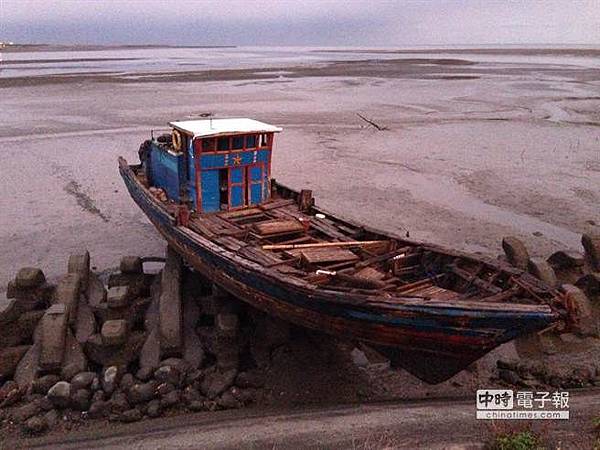 偷渡上岸的中國籍木殼船。(魯鋼駿翻攝)