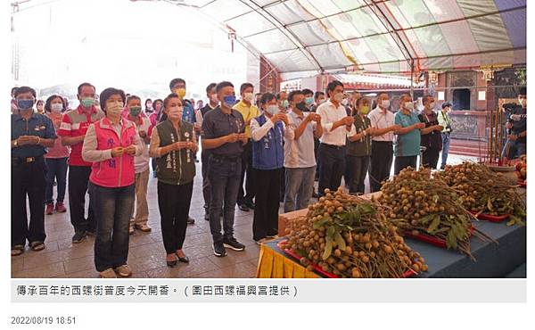 福興宮董事長楊文鐘指出,西螺街普傳承至今百年,每年固定在農曆7月22日開香,今年特別禮聘台南府城延陵道壇的吳羅錠高功道長主壇,法會結束後廟方代贊普民眾捐出2000份的普品物資給社福機構、地方低收入戶、弱勢團體及西螺分局轄內弱勢家庭,宣揚太平媽慈愛濟世的精神。