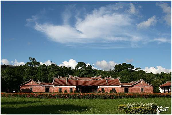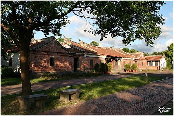 古厝前的月眉池,造型正如其名,在中國風水中,屬於聚寶收納的型制,不但具有防禦、防火、供水、降溫等功能,更替古厝環境生色不少。