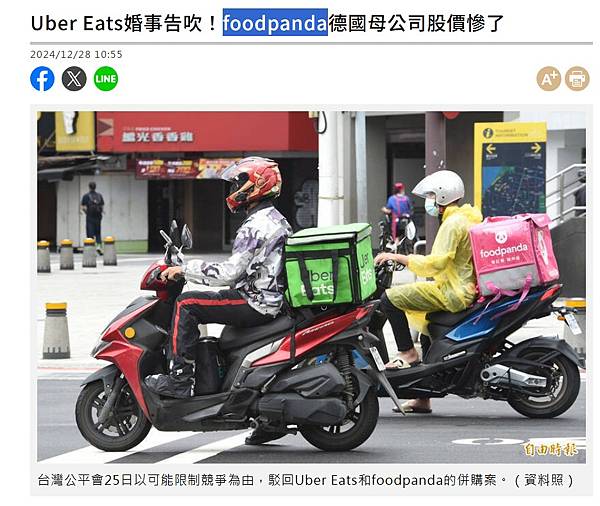 Uber Eats婚事告吹!foodpanda德國母公司股價慘了 - 自由財經