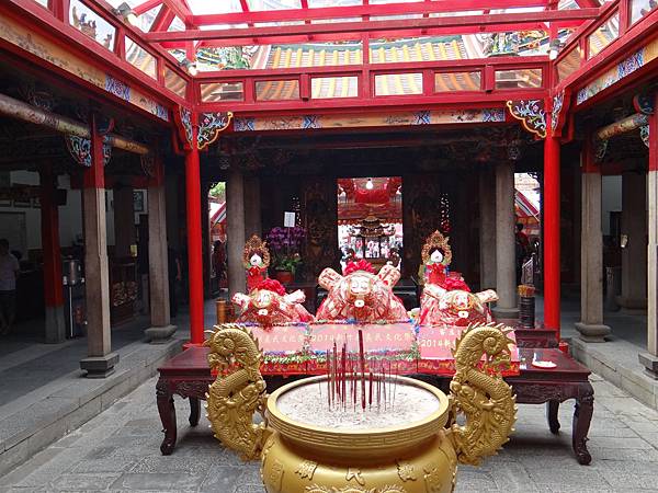 蔡英文昨由民進黨桃園市長提名人鄭文燦、縣黨部主委陳賴素美、縣議員張火爐等人陪同,前往黃萃記公號家族的黃屋公廳參觀,觀賞神豬牌樓、吃辦桌。