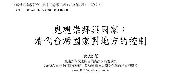 城隍廟/義民廟/厲壇/大眾廟-有應公廟/鬼魂崇拜與國家:清代台灣國家對地方的控制