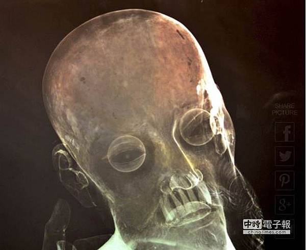 墨西哥一群科學家研究發現,透過X光呈現,在雕像口腔上唇處竟有8顆人類真牙。(擷自每日郵報)