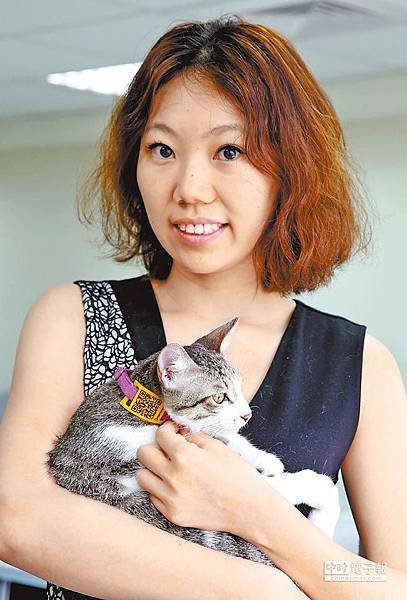 守護毛小孩Qme寵物項圈營運長葉妍伶創意發想將QR碼放到項圈上,當狗貓走失時,可以發動社群力量協尋。(王英豪攝)