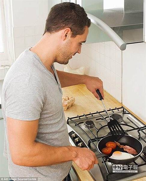 煎培根的香味能令男人心情大振,但還比不上瞧見美女。(翻攝自每日郵報)