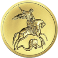 金幣上,聖喬治頭戴羽飾、披著戰衣騎在沒有馬鞍、馬鐙的戰馬上,左手執韁勒馬,戰馬前蹄凌空、馬嘯聲震惡龍。右手緊握短劍,被刺中的惡龍(西方民間傳說的龍有翅膀)仰倒在地,戰馬後蹄踏在掙扎的惡龍身上。圖中人、馬、龍比例適中、布局合理、雕刻精細、浮凸分明,將「聖喬治屠龍」的場面表現得淋漓盡致、逼真傳神,極富衝擊視覺效果。