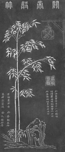 關帝詩竹畫是清康熙55年(公元1716年)韓宰臨摹的。關羽究竟有無此作,無處考證。據有關資料顯示,清代文人善用竹葉、花、鳥等組字成畫。關帝詩竹很可能是他們附會而成。 (天林)
