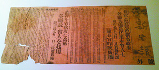 《台灣新生報》當年號外報導,泛黃的舊報紙以中、日文記載當時最高主管機關將改稱為省政府。 記者黃文鈴/攝影