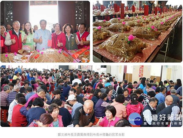 鄭文燦市長及貴賓與得到市長米糕龜的民眾合影