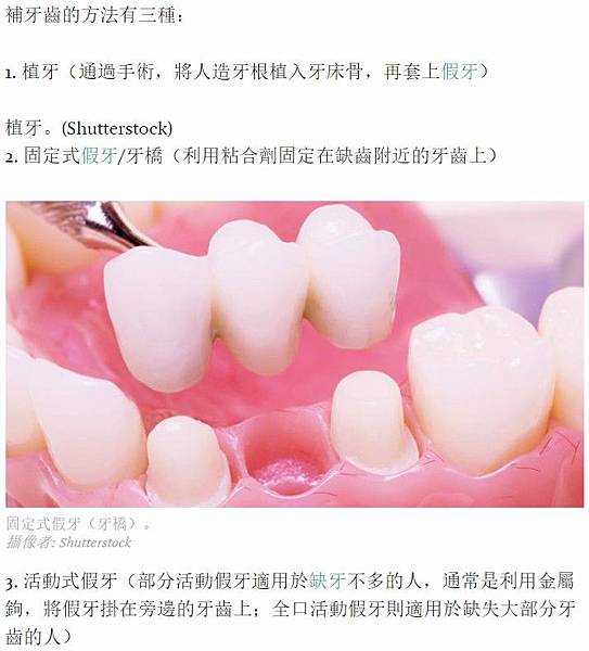 除了植牙外,面對缺牙狀況,李正喆指出,還可選擇傳統假牙因應,包括固定式或活動式假牙,都有不錯的效果,大部分的缺牙情況不是非植牙不可。