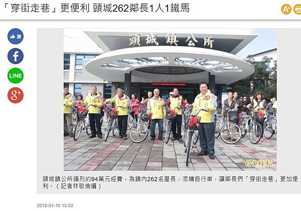 分享「穿街走巷」更便利 頭城262鄰長1人1鐵馬到Facebook 分享「穿街走巷」更便利 頭城262鄰長1人1鐵馬到Line 分享「穿街走巷」更便利 頭城262鄰長1人1鐵馬到Google+