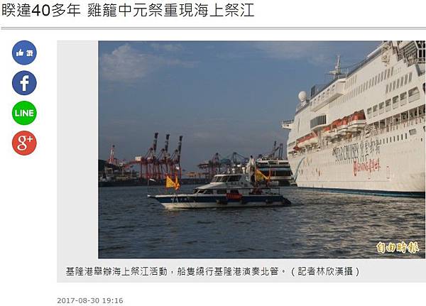 分享睽違40多年 雞籠中元祭重現海上祭江到Facebook 分享睽違40多年 雞籠中元祭重現海上祭江到Line 分享睽違40多年 雞籠中元祭重現海上祭江到Google+
