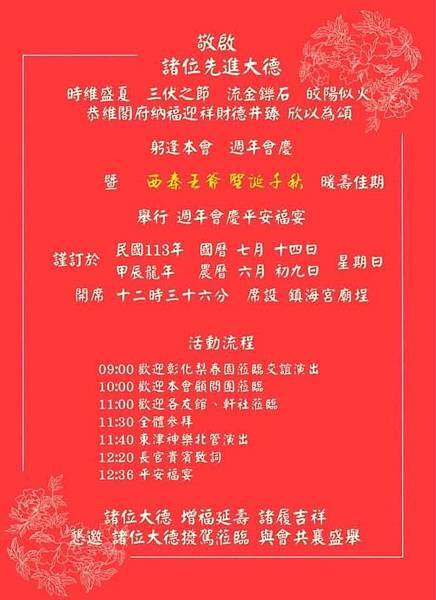 基隆聚樂社一組謹訂於七月二十九日(農曆6/24)
