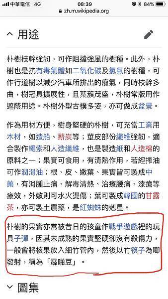 朴樹;樹葉可提煉滋養強壯劑,樹皮為治遲經、風疹和中暑良藥,果實為解熱劑,熟透的果實更能拿來生食,小孩還拿來當竹氣槍子彈。